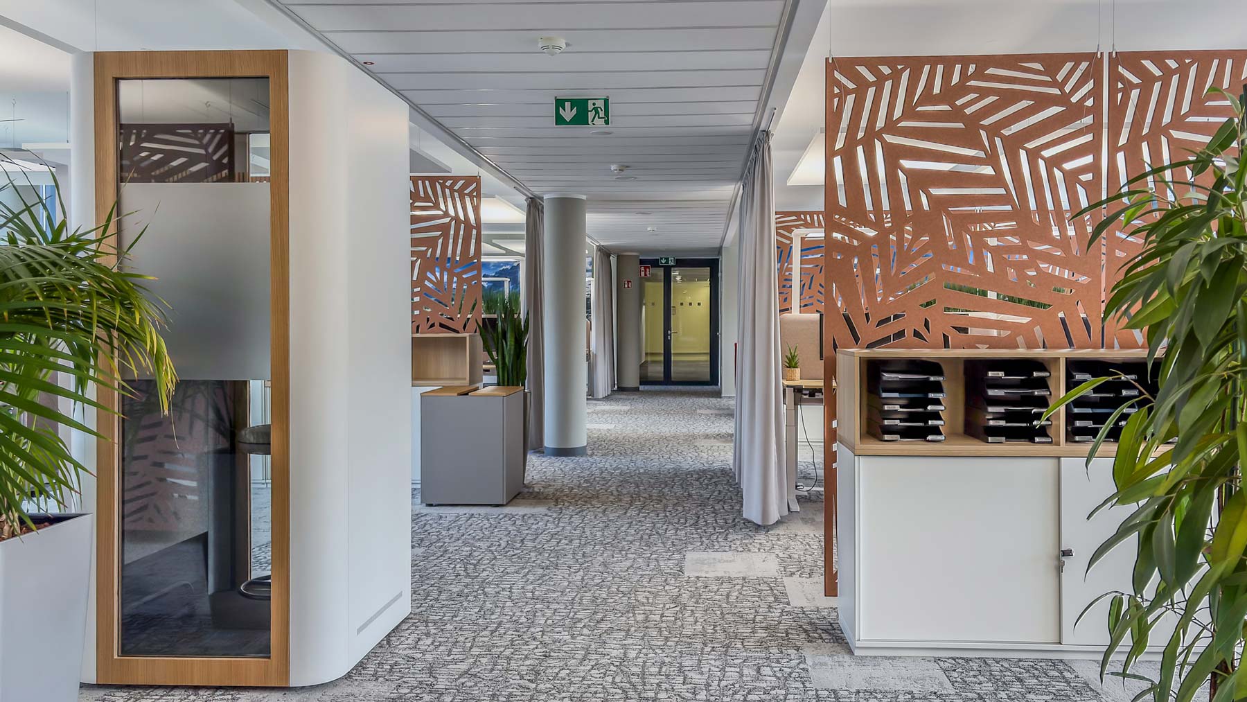 Ganzheitliche Raumgestaltung für einen internationalen Immobilienentwickler – funktional, akustisch optimiert und durchdacht bis ins Detail.